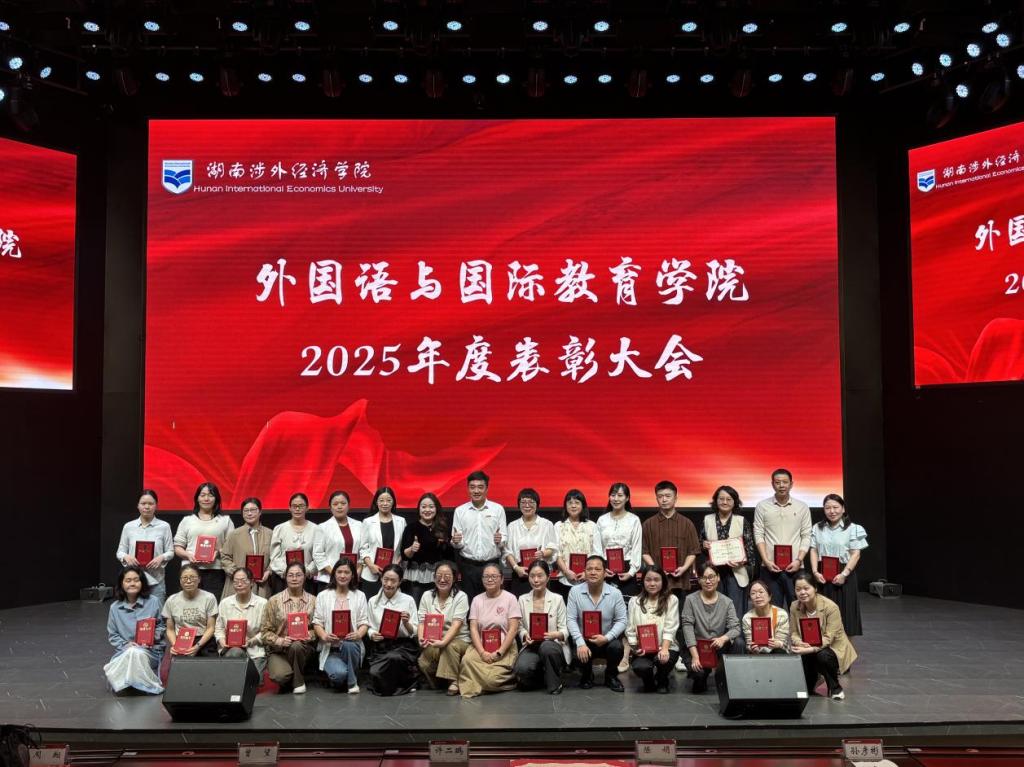 为表彰先进、凝聚力量,进一步激励教职员工的积极性和创新性,9月19日下午,我校外国语与国际教育学院在世纪讲堂召开2025年度表彰大会。外国语与国际教育学院院长许二鹏、副院长曾望及学院全体教职员工共同参会。