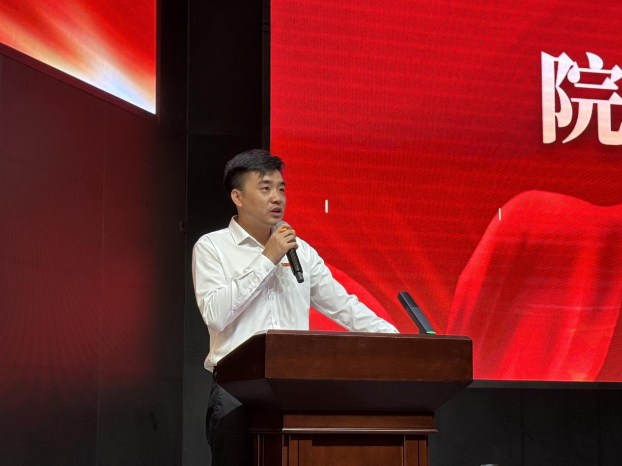 许二鹏院长以“感恩·传承·共创”为主题发表讲话。他首先回顾了学院一年来的多项成果:获批26项大创项目、13项教改课题,杨颖团队获省级竞赛一等奖并进军全国赛,刘熹颖获省青教赛一等奖;学生考研录取率全校第一,就业率达80%。他强调应传承学院“以学生为中心、追求卓越、开放包容”的优良传统,并提出未来将重点建设“卓越学术、创新育人和开放共享”的“三个学院”,持续优化学科布局、深化教学改革、拓展合作资源,全力支持教师发展与学生成才。最后,他鼓励全体教职员工再接再厉,力争实现明年考研录取率与参考率“双第一”。