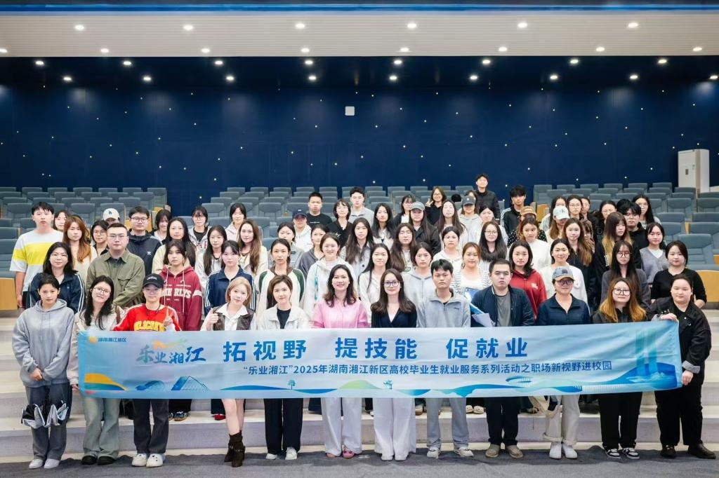 为助力高校毕业生洞悉职场前沿,提升就业竞争力,“乐业湘江——2025年湖南湘江新区高校毕业生就业服务系列活动之职场新视野”专题活动在我校商学院成功举办。本次活动通过“线下分享+线上直播”相结合的方式,为学子们带来了一场内容丰富、启发性强的职业规划课。