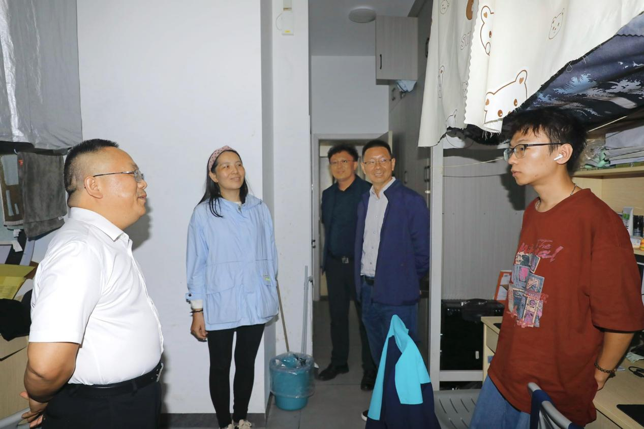 座谈会后,鞠晨曦副校长一行还前往毕业生宿舍开展走访慰问。领导们与毕业生围坐谈心,详细询问就业进展、毕业设计完成情况及生活中遇到的困难,结合自身经验为学子提供就业选择、职业规划等实用建议,鼓励大家坚定信心、积极应对职场挑战。同时,一行人细致查看宿舍生活环境,叮嘱毕业生注意用电安全、保持宿舍卫生,在做好学业收尾工作的同时保重身体。