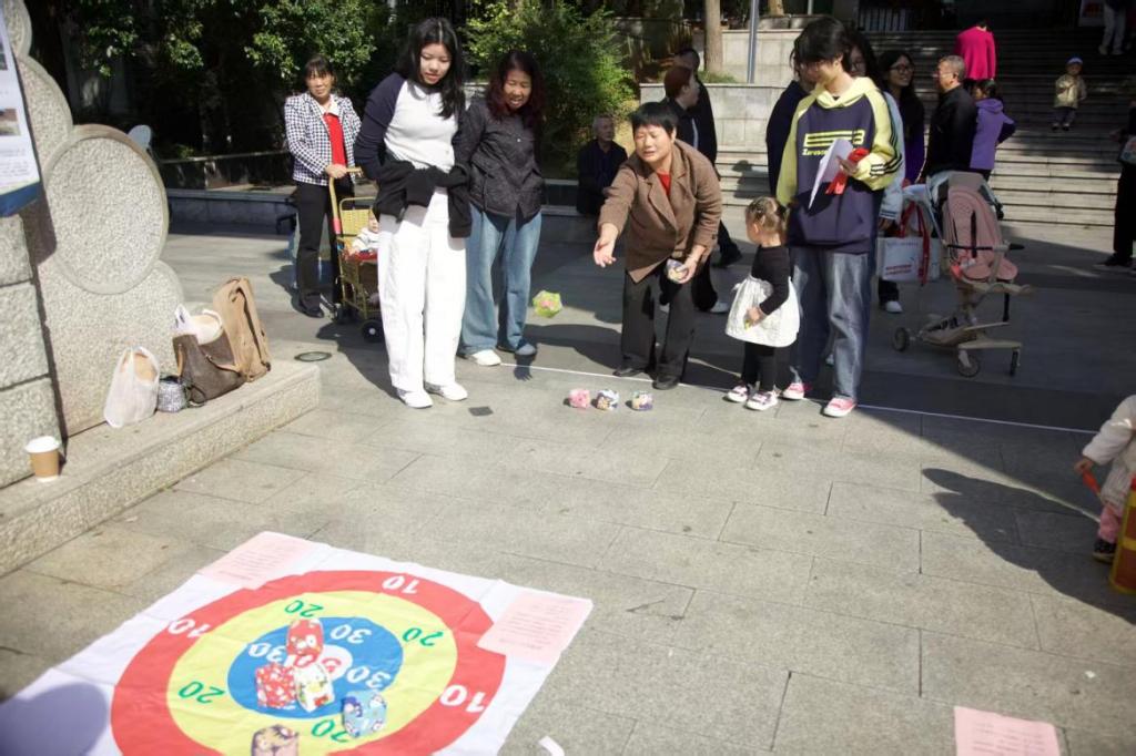 “禁毒知识大比拼”环节人气高涨,游戏区设置了投壶、沙包等游戏,趣味游戏过程中,“禁毒知识大比拼”环节人气高涨,投掷区域对应不同难度禁毒题目,居民击中后答题,可兑换定制礼品。志愿者同步提问禁毒知识,让居民们在运动乐趣中强化安全意识,这一“寓教于乐”形式吸引各年龄段居民踊跃参与。