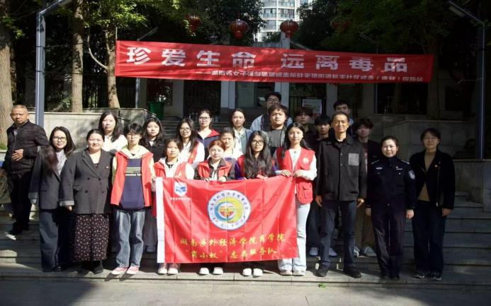 为深化校社协同治理,筑牢基层禁毒防线,10月24日,我校商学院“商小蚁”志愿服务队携手湖湖南省女子强制隔离戒毒所(湖南省女子戒毒康复所)在老虎岭社区共同举办“利剑出鞘护花蕾,共筑安全成长线”禁毒宣传活动。校社警三方联动,创新“理论讲解+实物展示+趣味互动”模式,为校社共建基层公益宣传树立典型。