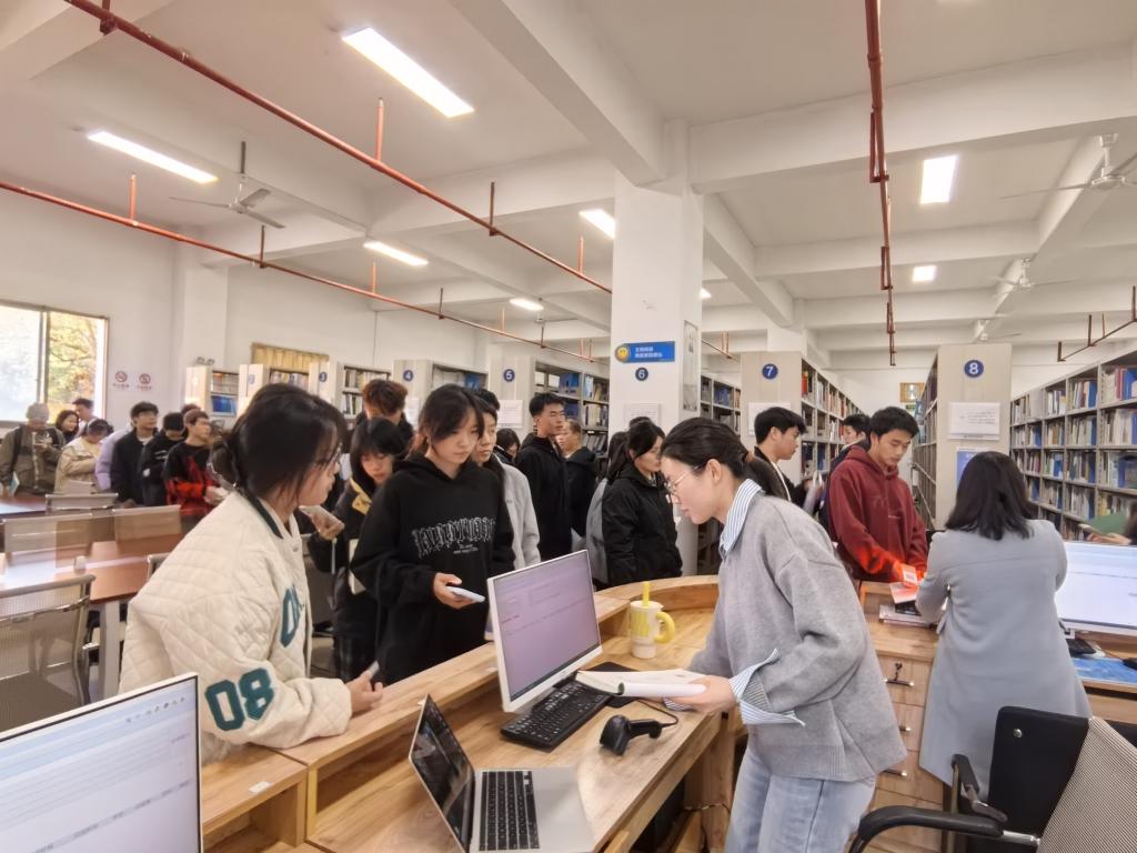 活动期间,图书馆各借阅室读者络绎不绝,书香萦绕其间。面对高涨的借阅需求,图书馆工作人员始终秉持饱满的工作热情与专业的服务态度,为前来咨询、选书、借阅的师生提供全程贴心引导,从图书检索、借阅流程讲解到阅读推荐,细致周到的服务赢得了师生们的一致赞誉。不少同学在参与活动后表示,此次推广活动让他们重新发现了纸本书籍的质感与深度,在翻阅书页的过程中感受到了不同于电子阅读的沉浸体验,更通过工作人员的专业推荐,找到了契合自身兴趣与学业需求的优质书籍。