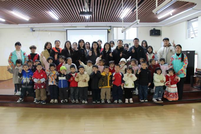 为深入学习贯彻党的二十届四中全会精神,积极推动“大中小思政一体化”建设,将中国共产党人精神谱系的丰富内涵以生动有趣的方式传递给学龄前儿童,12月17日,我校外国语与国际教育学院党总支组织师生党员代表,前往长沙高新区青果树佳境幼儿园举办了“童心向党·薪火相传”红色精神启蒙小课堂活动。学院执行院长、党总支书记许二鹏,党总支副书记匡希茜亲临活动现场进行指导。