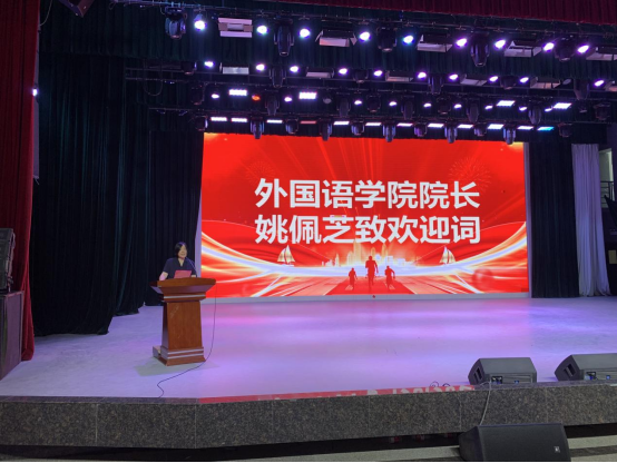 大会在庄严的国歌声中拉开帷幕。外国语学院院长姚佩芝向来自全国各地的2022级新同学表示了热烈的欢迎。她简要介绍了外国语学院和国际学院的基本情况,并向2022级的同学们提出了希望:在中外求索中融汇东西方文化,讲好中国故事,传播好中国声音,阐释好中国特色,在不同文明之间架起沟通的桥梁贡献力量。