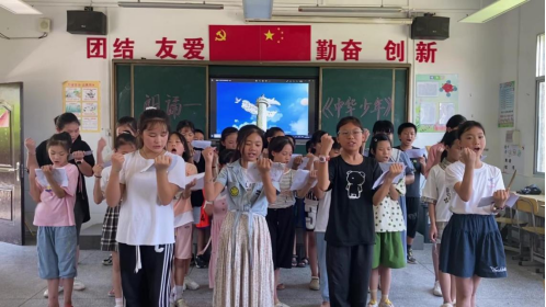 铿锵有力的声音在教室里回荡,晨心支教队带领学生们朗诵爱国诗词《中华少年》,让学生们更好的感受普通话的魅力,学生们从字里行间领悟爱国精神,培养学生的爱国情怀,激发同学们建设祖国的热情。通过爱国诗词的朗诵,也让同学们认识到学习普通话的重要性,提高学习语言文化的兴趣。