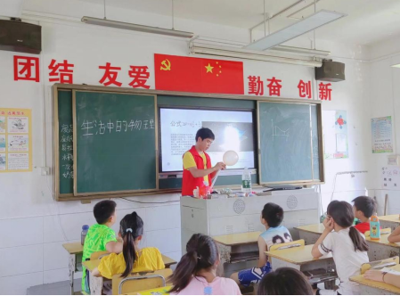 科学启智润心,推普乡村振兴。晨心支教队开设了《物理中的普通话》实验课程,学生们通过趣味物理小实验了解到声音是如何产生和传播的,这不仅激发了同学们的好奇心和探究热情,更是教会他们在实验中探索事物发展的规律、在实践中孕育科学创新的思维。在实验过程中,支教老师与同学们之间不断沟通交流,促进学生语音体验的升华。