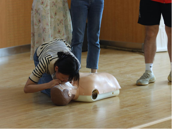 在讲解心肺复苏急救技能时,众力志愿服务队邀请了该校的老师上台学习并进行演练,博才桐溪小学的老师在练习后表示:“让孩子远离溺水事故,安全教育是必不可少的关键环节,自己之前也没怎么接触过急救知识,通过这次的学习更加了解了心肺复苏的操作方式,在今后的校园工作中,会加强宣传引导,排查安全隐患,教育管理学生,做到全面覆盖,不遗漏一人,确保不出现安全事故。”