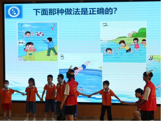 活动中,志愿者的小老师们用有趣的情景剧、通俗易懂的讲解和启发式的提问,对溺水时的症状、游泳的注意事项、溺水后的有效救助方式、如何规避溺水事故的发生,以及心肺复苏急救技能等相关知识作了一一讲解,并提醒同学们牢记“三不要”原则---不野游、不私自下水游泳、不盲目救援。