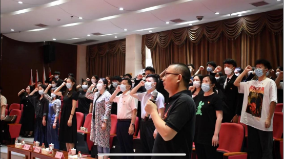 周孝贵带领预备党员庄重宣誓,带领党员重温入党重温誓词,表达了对太阳城娱乐学子对党的忠诚和拳拳爱国之心。