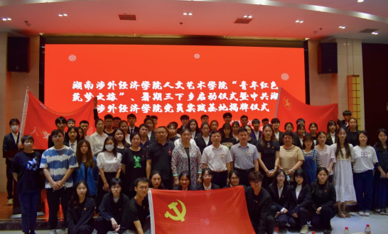 丁洋为本次活动致辞,希望人文艺术学院全体党员以“青年红色筑梦之旅”为目标导向,树立高度的政治自觉,练就过硬的能力本领,以伟大的中国精神推动伟大实践,踔厉奋发,笃行不怠,继续朝着实现中华民族伟大复兴的宏伟目标奋勇前进。随后,她为人文艺术学院“暑期三下乡”活动授旗。