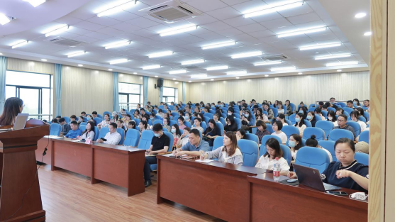 为全面推进我校课程思政建设,提高立德树人水平和人才培养质量,5月27日下午,我校“课程思政教学专题培训”活动第三讲(文科组)在新综合楼D202报告厅举行。学校邀请2021年湖南普通高校课程思政教学比赛一等奖获得者、湖南省普通高校教学能手、湖南大学中国语言文学学院硕士生导师胡珂菲,作了“价值认同助推课程新发展”专题分享。我校各二级学院主管教学副院长、教师代表近两百人参加培训。教务处处长吴建功主持此次培训。