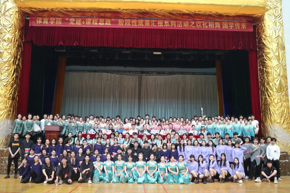 为推进“课程思政”建设,将立德树人贯彻到课堂教学全过程、全方位、全员之中,不断提高人才培养质量,将“课程思政+作业思政+作品思政”相融合,5月下旬,我校体育学院社会体育系、表演系陆续在体育馆内场开展“党建+课程思政”期末教学成果汇报活动。