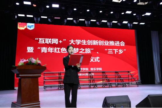 5月26日上午,我校音乐学院第八届“互联网+”大学生创新创业推进会暨“青年红色筑梦之旅”、“三下乡”活动启动仪式在音乐厅举行。音乐学院院长王跃辉,党总支书记陈志明、副书记尹理智,校团委副书记任海巍,全体辅导员老师以及“青年红色筑梦之旅”领导小组成员参加了启动仪式。