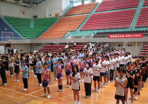 雄壮的国歌声中,闭幕式徐徐开启,联合代表队和体育学院代表队的同学共同带来精彩的表演赛,运动员们各施绝技,充分发挥精湛的个人技术和熟练的战术配合,现场氛围瞬间点燃。