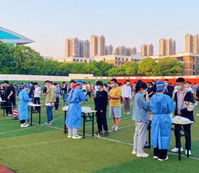 来自学院团总支综合办公室部门的刘松铭同学介绍。在现场,志愿者们在老师的指导下,主要负责组织学生有序排队、保持间距以及管理场内外各检测安全通道,努力做到无缝衔接,并为师生们针对核酸检测的相关问题进行答疑解惑。