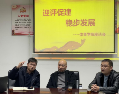 为调动体育学院教师以积极的心态迎评估,以实际行动促评建,充分发挥教职工主人翁精神,进一步扎实有序推进迎评促建工作,2021年12月31日,我校体育学院在体育馆一楼会议室召开“迎评促建、稳步发展”教师座谈会。副校长汪东明出席,体育学院院长谢明、党总支书记陈志明、教学督导主任王艳、部分骨干教师等参加本次座谈会。会议由体育学院院长谢明主持。