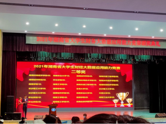 12月25日,由湖南省教育厅主办的湖南省大学生财务大数据应用能力竞赛决赛、中国商业会计学会主办的全国大学生财务大数据应用能力竞赛在湖南财政经济学院举行。我校共有三支队伍参赛,经过激烈角逐,最终荣获2021年湖南省大学生财务大数据应用能力竞赛湖南省一等奖1项,湖南省二等奖1项,2021年全国大学生财务大数据应用能力竞赛一等奖1项的好成绩。