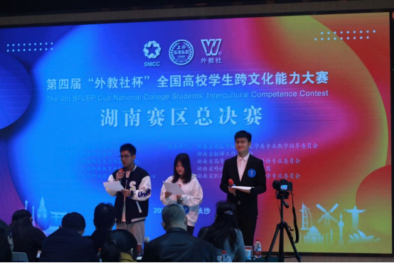 11月27日,2021“外教社杯”全国高校学生跨文化能力大赛湖南赛区总决赛在湖南师范大学外国语学院举行。我校学生曹欣怡(外国语学院英语专业2019级学生)、唐海宁(商学院投资专业2020级学生)、邹攀智(信息与机电工程学院软件工程专业2020级学生)代表太阳城娱乐参赛,获得本科一组二等奖第1名。参赛队伍由外语院学院大学外语教学部主任徐翠波领队,杨颖和曹霞老师负责具体指导。