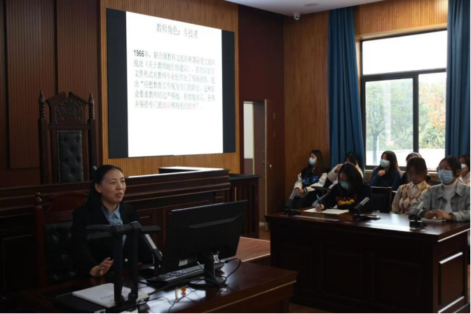 三尺讲坛授华识,半寸素笔解疑章。为活跃校园学术氛围、提升师生人文素养,我校人文艺术学院于11月16日在校新模拟法庭,开展了以《教师专业发展与走向专业的听评课》为主题的学术讲座。本次讲座由人文艺术学院汉语言文学专业主办,特邀湖南师范大学文学院教授、博士、硕士生导师杨云萍主讲。人文艺术学院近200名学生及部分骨干教师、青年教师共赴了这场启迪心灵、指明方向的学术盛宴。