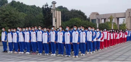 迎着清晨第一缕阳光,国旗护卫队迈着整齐有力的步伐,护送五星红旗走上升旗台。伴着庄严嘹亮的中华人民共和国国歌,鲜艳的五星红旗冉冉升起,全场师生怀着崇敬和激昂的心情,行注目礼,高唱国歌,深怀对祖国无限的热爱和崇高的敬意。