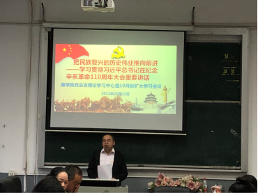 10月12日下午,我校商学院党总支在二教学楼115会议室召开了10月份理论学习中心组扩大学习会议,学院党总支全体委员、支部书记和辅导员参加了会议,会议由商学院党总支书记唐志文主持。