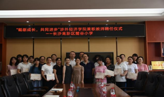 2021年9月27日下午,我校人文艺术学院汉语言文学专业2021届毕业生教育实习总结暨兼职教师聘任仪式,在长沙高新区麓谷小学拉开帷幕。麓谷小学校长左鹏、副校长黄意斌、办公室主任黄艳丽,我校人文艺术学院副院长戴文霞、中文系主任冯健飞、大学语文教研室主任陈韵、实习生带队老师严威娜等出席此次仪式。表彰聘任仪式由黄艳丽主持。