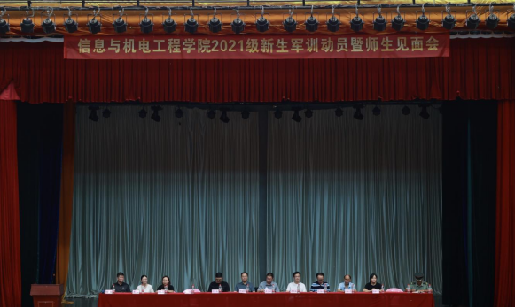 9月10日上午,我校信息与机电工程学院在体育馆召开2021级新生军训动员暨师生见面会。会议由信息与机电工程学院党总支书记廖立彬主持,信息与机电工程学院领导、各系部主任、新生辅导员和全体新生参加。