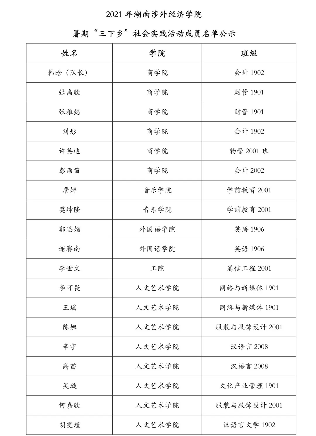 支教名单公示