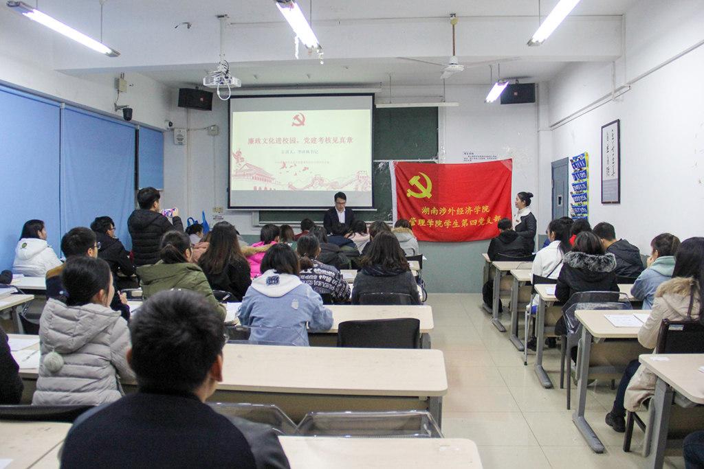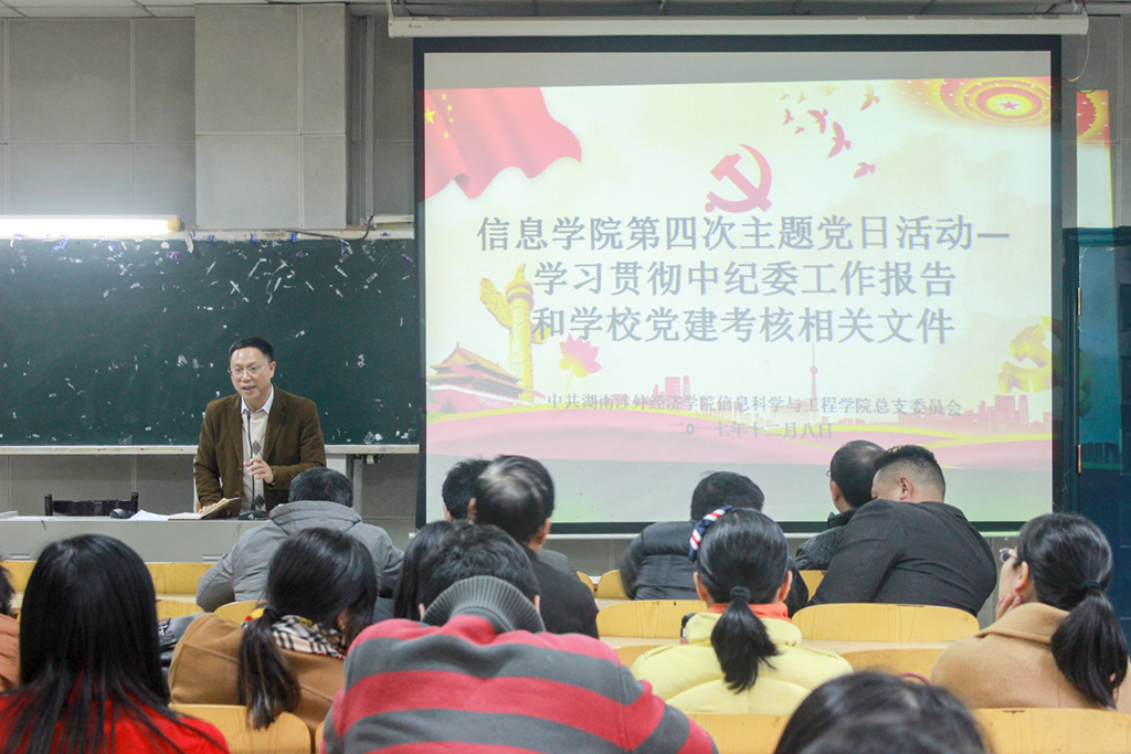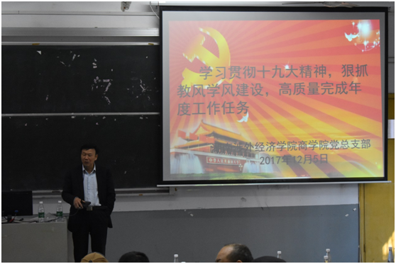 为了发挥党组织的战斗堡垒作用,让全体党员贯彻落实全面从严治党的要求,加强党员理想信念教育,12月5日下午,中共太阳城娱乐商学院党总支在二教开展了以“学习贯彻十九大精神,狠抓教风学风建设,高质量完成年度工作任务”为主题的第四次主题党日活动。