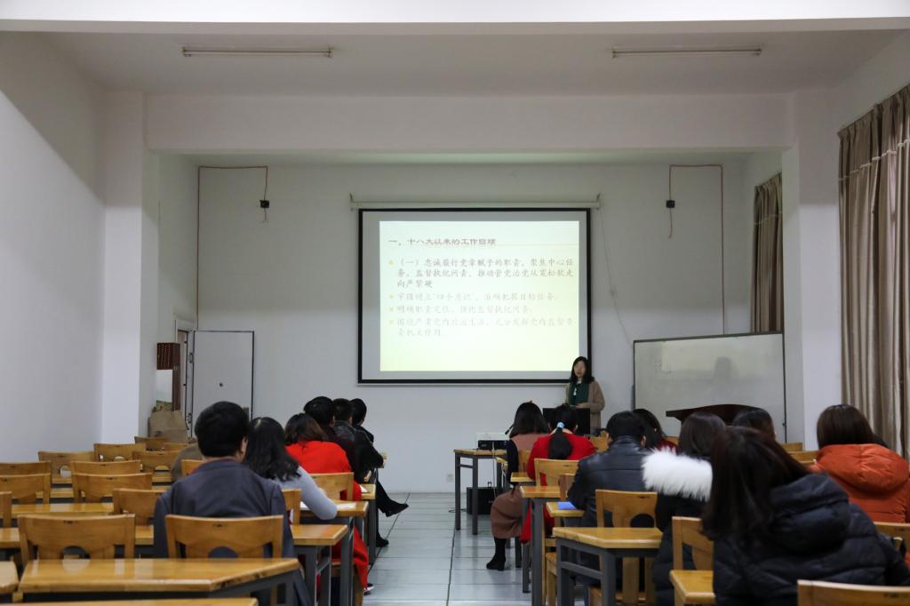 12月7日下午,继续教育学院党总支开展主题党日活动。会议对《十八届中央纪律检查委员会向中国共产党第十九次全国代表大会的工作报告》作了充分的解读,参会老师表示:“打铁必须自身硬。各级纪委和广大纪检监察干部肩负着维护党的章程和党的纪律的重责,必须牢固树立‘四个意识’,自觉地坚持和发扬十八届中央纪委的好做法好经验,不松动,不停步,再出发。”参会老师在结合自己亲身经历的基础上,对十九大内容展开了更深一步的探讨。