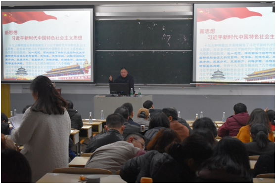 商学院党总支书记唐志文讲述了十九大的“四个新”(新时代、新使命、新思想、新征程)的内容及要求,对十九大报告进行了解读,重点传达了校长王耀中教授对十九大报告学习的分享内容。王涛生教授结合王耀中校长的分享内容和唐志文书记的解读对本次会议进行了总结性讲话,要求老师们在教学活动中必须贯彻落实十九大报告的精神,加强学习王校长讲话中关于十九大报告中的教育理念。将学风、院风作为突出重点,切实做好我院教育教学工作。通过这次学习,党员们不仅能深刻了解了十九大报告的内容和精神,并表示在今后的工作中落实好自己的工作任务,履职尽责,充分发挥党员先锋模范作用。