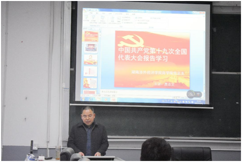 首先,学院党总支书记唐志文副教授作十九大精神解读及中纪委工作报告学习辅导。