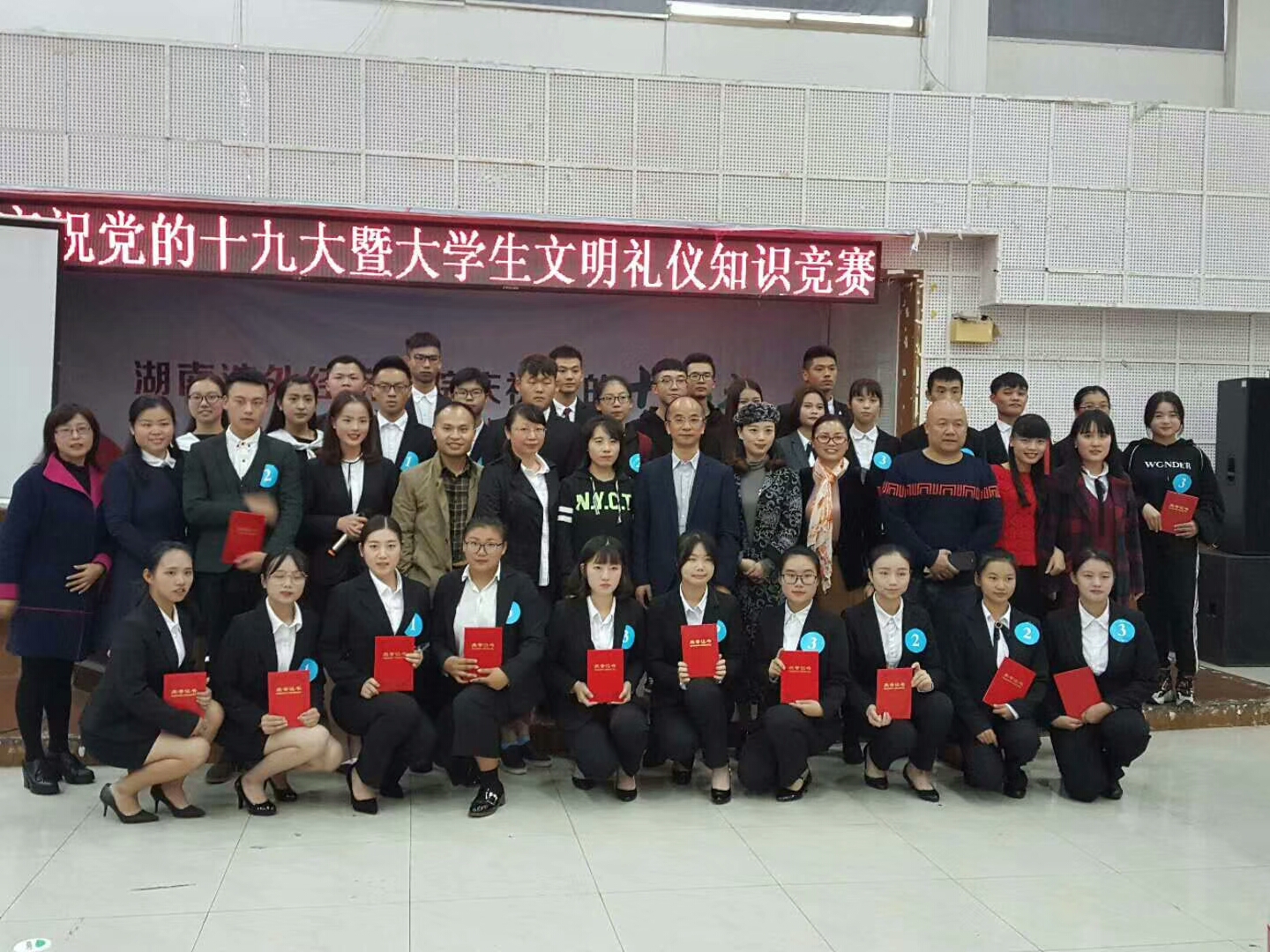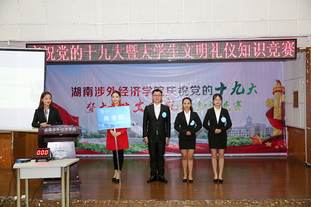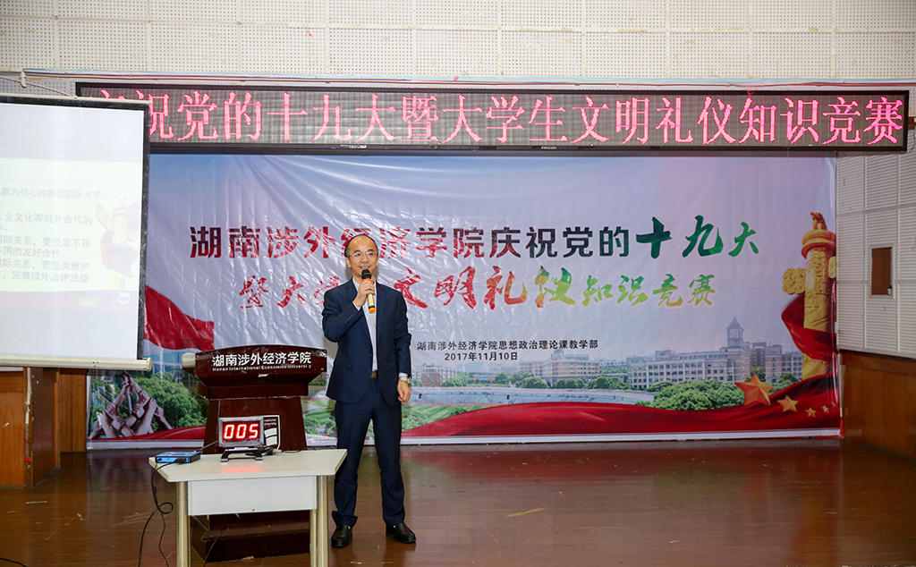 最终,通过激烈的比拼,管理学院和商学院代表队夺得了本次知识竞赛的冠军,体育学院、外语学院、音乐学院、国际教育学院代表队获二等奖,文法学院,信息科学与工程学院,机械工程学院,艺术设计学院代表队获三等奖。最后大家在主持人的引导下现场学习了十九大报告的部分内容。