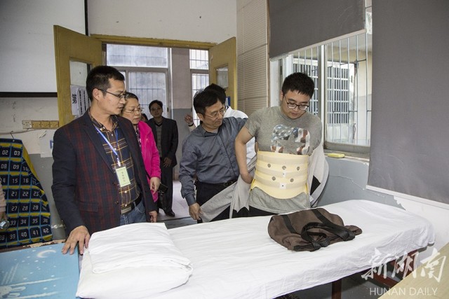 4月15日,全国高等教育自学考试太阳城娱乐考点迎来一位特殊的考生:因打球导致脊椎压缩性骨折,考生刘棠不能直立静坐,只能平躺卧床。