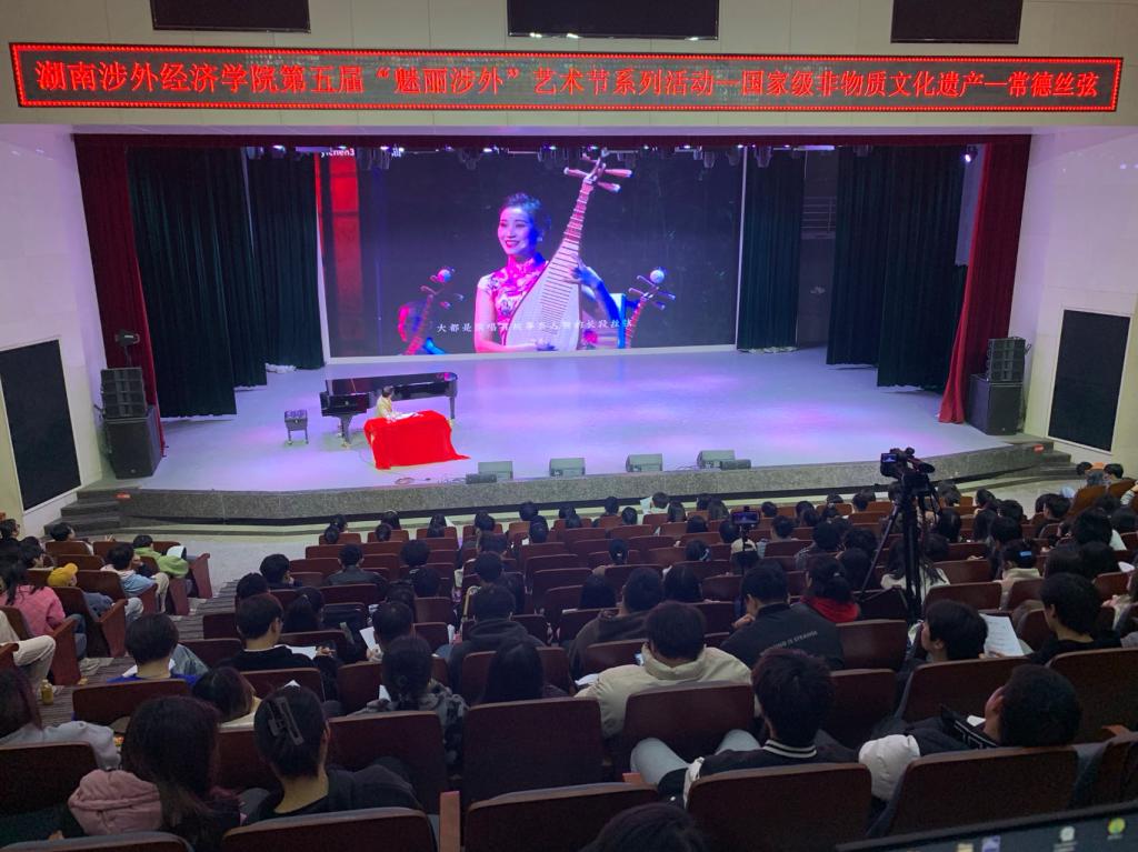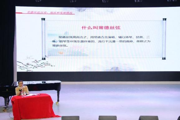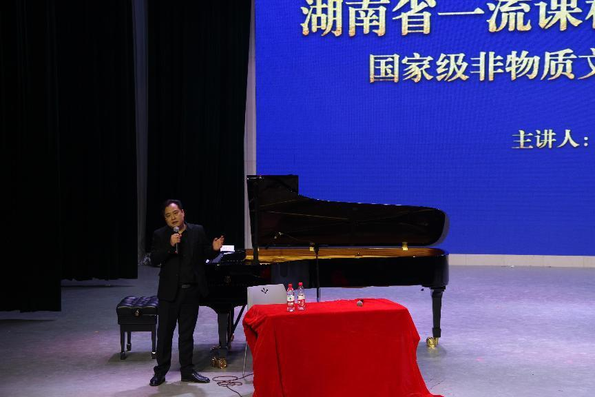 为贯彻落实中央办公厅、国务院办公厅出台的《关于进一步加强非物质文化遗产保护工作的意见》,将非物质文化遗产内容贯穿国民教育始终,加强高校非物质文化遗产学科体系和专业建设,2023年12月8日下午,第五届艺术节系省级一流湖南民歌研习特色课程,特邀常德市音协音乐理论创作委员会会长、作曲家罗继南、湖南文理学院音乐舞蹈学院范险恩在音乐楼实验剧场进行了国家非物质文化遗产—常德丝弦创、演、唱、奏的专题讲座,此次讲座由音乐学专业大四全体学生共同参与,课程负责人、公共艺术系主任彭翔主持。