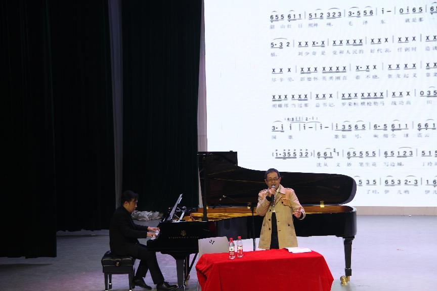 第三部分,两位老师合作演绎了一首融合常德丝弦进行创作的《生在潇湘多自豪》,罗老师沧桑却又灵动的演唱搭配范老师悦耳的钢琴伴奏,为大家呈现了一场精彩绝伦的表演。现场掌声不断,欢声不绝。最后,在我院学子的诚挚提问下,两位老师又讲到,不管是音乐创作或演唱要先学会热爱民族音乐,要在原先的音乐基础上取其精华去其糟粕,从而拓延出当代年青人所喜爱的值得深思的优秀作品。