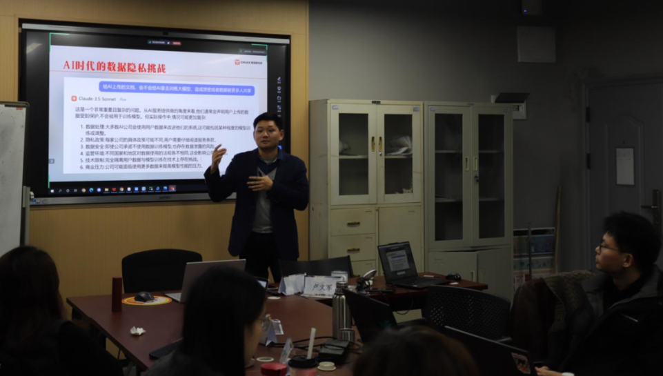 此次培训首日选取《白蛇传》IP创新作为实践案例,系统探索了AI文本工具Claude在创意教学中的应用价值。上午,卢文军老师首先介绍了AIGC技术的发展现状和基本原理,重点分析了AI文本生成工具在教育领域的应用趋势。随后通过实例演示,详细讲解AI对话策略、创意引导方法等核心要点。下午的实践环节,教师们尝试运用AI工具进行创意构思。通过设定不同的创作主题和风格要求,探索了AI辅助下的叙事创新方法。在数据安全方面,培训特别强调了教育场景中的隐私保护要求,详细说明了数据使用规范和伦理边界,并提供了具体的防范建议。