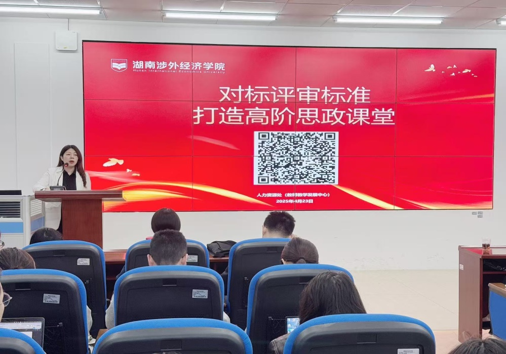 4月24日,为助力我校教师备战2025年高校课程思政教学竞赛,深化思政元素与专业教学的有机融合,人力资源处(教师教学发展中心)邀请天津大学课程思政研究与实践中心理事吴兆彤博士以及该校课程思政名师王鹤博士,开展“对标评审标准-打造高阶思政课堂”专题讲座与工作坊培训,本次培训为期一天,上午为专题讲座,在新综合楼C315举行,下午分两个班,在教师教学发展中心(实训楼南509、510)举行,来自各二级学院80余名教师参训。本次培训由人力资源处副处长彭伊凡主持。