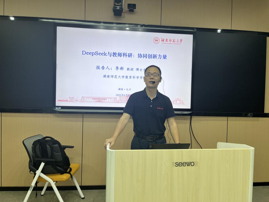 6月26日上午,为助力我校教师掌握智能教育工具的应用,探索AI技术与教学科研的深度融合路径,为学校高质量发展持续注入新动能。人力资源处(教师教学发展中心)邀请湖南师范大学教授、博士生导师李新在教师教学发展中心(实训楼南512)开展主题为“融合DeepSeek 升级AI技术赋能教学科研”的专题培训,来自各二级学院36名专任教师参训,本次培训由人力资源处副处长彭伊凡主持。