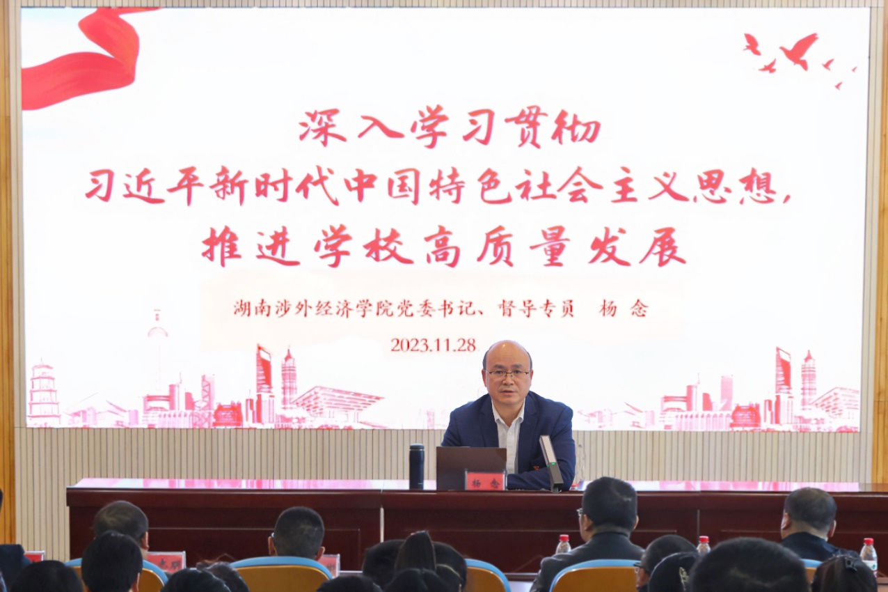 11月28日下午,我校党委书记、督导专员杨念以“深入学习贯彻习近平新时代中国特色社会主义思想,推进学校高质量发展”为题,在新综合楼裙楼D202为全校党总支书记、副书记、学生党支部书记近160人讲授专题党课。本次党课由校党委组织部部长李方圆主持。杨念围绕习近平新时代中国特色社会主义思想的世界观和方法论的集中体现、思想定位、自觉运用等三个方面,重点解读了“六个必须坚持”的深刻内涵、内在关系和实践要求。他指出...