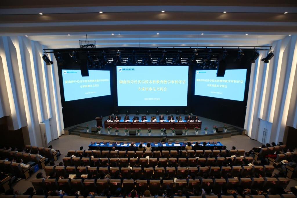 12月2日下午,我校在世纪讲坛报告厅召开本科教育教学审核评估专家组意见交流会。湖南省委教育工委委员、省教育厅党组成员、副厅长左清出席会议并讲话。专家组全体成员及工作人员,学校董事长任艳丹,校长王耀中,校党委书记杨念,全体校领导出席会议。职能部门科级及以上干部,二级学院院领导以及系(教研室)主任,有关工作人员参会。会议由专家组组长夏飞主持。夏飞代表评估专家组向学校反馈审核评估总体情况。根据教育部教育...