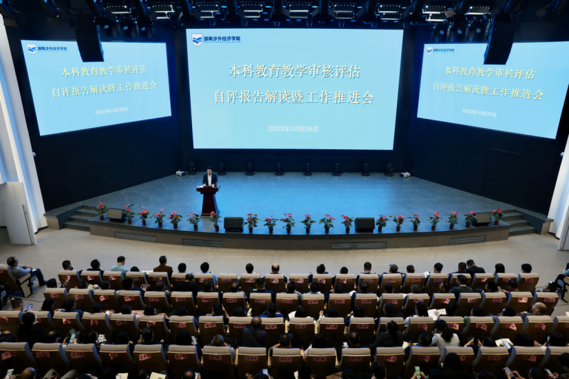 为促进全体师生进一步了解学校开展本科教育教学审核评估以来所做的工作,10月26日下午,我校在世纪讲坛召开本科教育教学审核评估自评报告解读暨工作推进会。全体校领导、科级以上干部、二级学院系(教研室)主任、校院两级教学督导、辅导员共计360余人参加会议。会议由副校长陈斌主持。会上,高金定副校长对学校本科教育教学工作审核评估自评报告进行了详细解读,围绕办学方向与本科定位、培养过程、教学资源与利用、教师队伍、...
