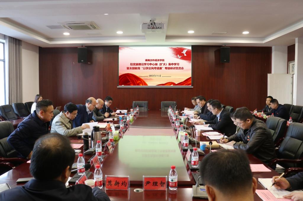 10月26日下午,我校校党委理论学习中心组(扩大)集中学习暨主题教育“以学增智强本领”专题研讨交流会在综合楼A206会议室举行。我校马克思主义学院院长周仲秋作专题辅导报告。校党委书记杨念主持会议,校党委副书记、校长王耀中,校党委副书记、副校长汪东明,副校长陈斌、鞠晨曦、高金定及校党委委员参加研讨交流会。周仲秋教授作“深刻领会习近平新时代中国特色社会主义思想的世界观和方法论”主题报告,从必须坚持“人民至...