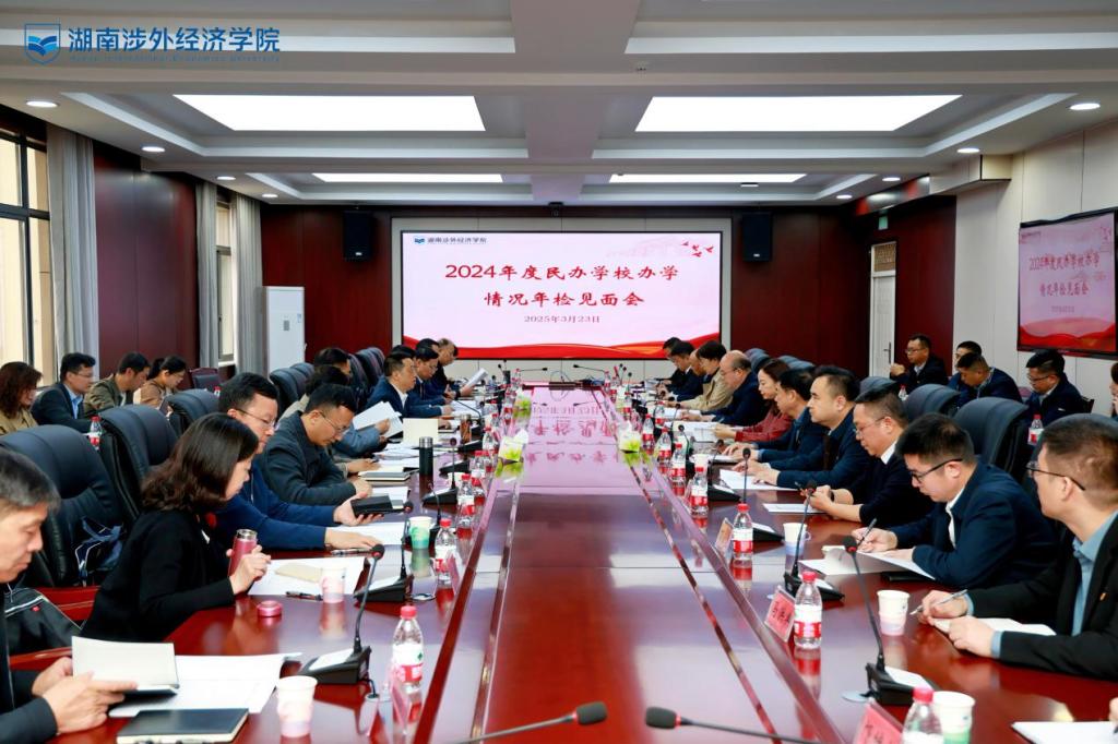 3月23至24日,根据省教育厅的安排,由专家组组长、湖南工程学院原党委书记陈岳堂带队的省教育厅民办本科学校年检专家组一行来我校进行2024年度民办本科院校办学情况检查工作。学校董事长、全体校领导及相关部门主要负责人参加会议。校党委书记杨念代表学校对年检专家组莅临我校检查指导工作表示最热烈的欢迎!表示我校高度重视此次年检工作,将听取意见建议,切实加强整改,推动学校各项事业再上新台阶。校长王耀中从党建与思政...
