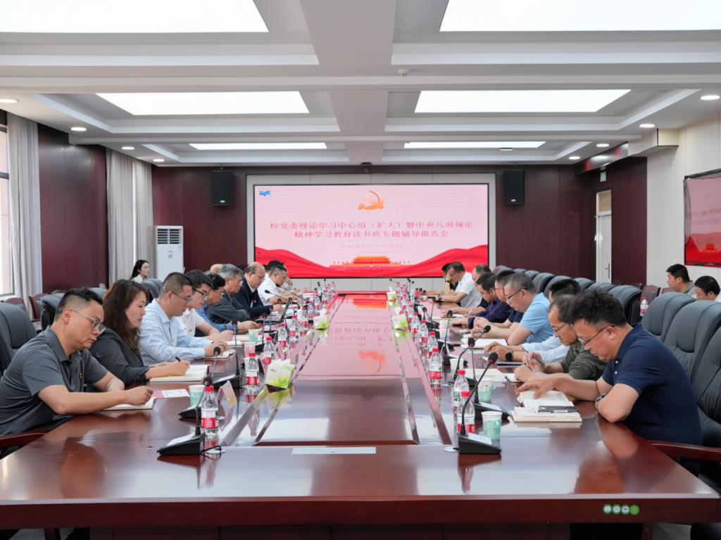 4月17日,我校在新综合楼A402会议室举行了校党委理论学习中心组(扩大)暨深入贯彻中央八项规定精神学习教育读书班专题辅导报告会。省委党校副校长张思京教授作专题辅导报告。校党委书记杨念主持会议,校党委副书记、校长王耀中,校党委副书记、副校长汪东明,副校长鞠晨曦、高金定,其他党委委员,校长助理王琦参加会议。省委党校副校长张思京围绕“增强法规制度执行动力——学习中央八项规定精神”主题,从执行动力建设的必...