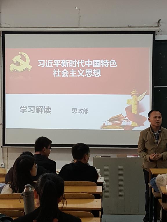 (李故新主任讲授习近平新时代中国特色社会主义思想) (思政课部教师讲授习近平新时代中国特色社会主义思想)根据学校关于落实习近平新时代中国特色社会主义思想进教材、进课堂、进师生头脑“三进”工作指示精神,思政部全面部署“三进”工作,并拟定了详细具体的工作方案。3月12-16日,思政部进行为期一周的“习近平新时代中国特色社会主义思想进课堂、进学生头脑”教学活动。本次教学活动通过集体备课,形成教学统一课件...