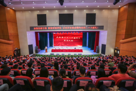 为加强党建领导,聚焦审核评估,以优异的成绩向党的二十大献礼,9月8日下午,我校于音乐厅举行第38个教师节表彰大会。校长王耀中,校党委书记杨念,副校长陈斌、岳艳丽、鞠晨曦、汪东明、高金定出席本次大会,获表彰教师代表,机关职能部门、各院系领导、学生代表参加大会。表彰大会由校党委书记杨念主持。大会开场,全体教师起立齐唱国歌。随后副校长陈斌宣读表彰决定,校长王耀中,副校长陈斌、鞠晨曦、岳艳丽、汪东明、高金...