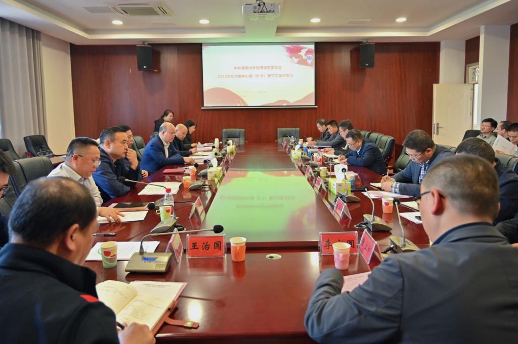 4月26日下午,校党委理论学习中心组(扩大)在新综合楼A206会议室举行2023年度第三次集中学习,会议围绕习近平新时代中国特色社会主义思想实现了马克思主义中国化新的飞跃,以及《反电信网络诈骗法》进行深入学习与研讨。校党委书记杨念主持会议,校党委副书记、校长王耀中,校党委副书记、副校长汪东明,副校长陈斌、岳艳丽、鞠晨曦、高金定及校党委委员参加学习会。副校长鞠晨曦围绕习近平新时代中国特色社会主义思想实现了马...