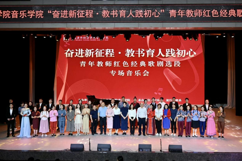 发扬“站得讲台,上得舞台”的专业特色,把思政课堂搬上舞台,唱红色经典,讲中国故事。4月20日晚,我校音乐学院在音乐厅举办青年教师红色经典歌剧选段专场音乐会。宇华教育集团副总裁、我校董事长任艳丹,宇华教育集团各部门领导,集团旗下郑州工商学院、山东英才学院以及我校领导及专家出席本次晚会。一曲荡气回肠的《绣红旗》拉开了此次音乐会的帷幕。合唱《红梅赞》带领现场观众走进峥嵘岁月;《影子之歌》带领观众沉浸东...